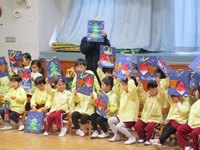 絵本の読み聞かせや本荘にこにこ園の先生とコラボしてのハンドベルの演奏など、盛大なお楽しみになり、子どもたちも大喜びでした。