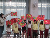 バックの紹介では全員で作ったバックを両手に持って発表です。