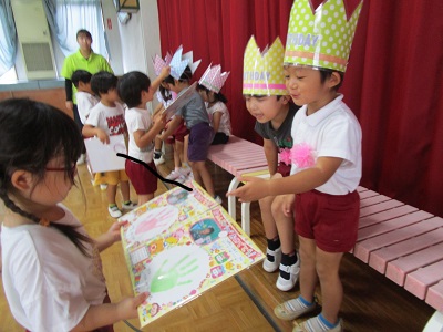 9月26日(金)に9月の誕生日会をしました。9月に一つ大きくなった10名(1名欠席)のお友達をみんなでお祝いしました。