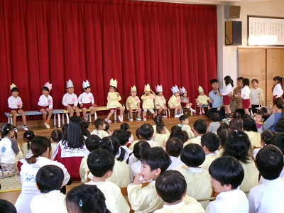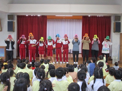 いよいよお楽しみの時間! 今回のお楽しみは・・・パネルシアター『すてきな帽子屋さん』