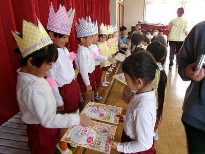 次に翌月の誕生児からお祝いの色紙を渡しました。